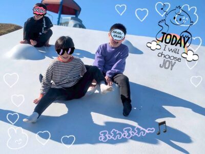 中結城公園にお邪魔して、思いっきりあそびました。白いふわふわ滑り台に大はしゃぎの子ども達