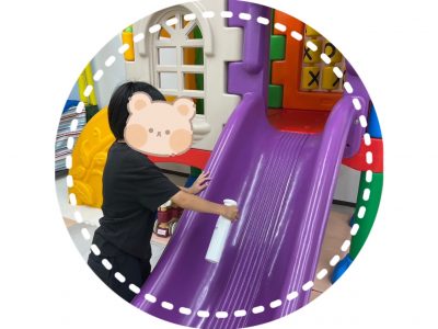 自分のロッカーやランドセルの中の整理、いつも遊んでいる遊具の消毒や本棚の整理整頓など隅々まできれいに掃除しました☆