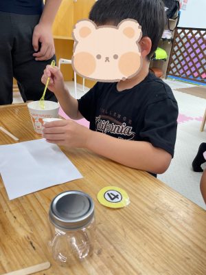 だんだんと色が変わっていく様子や、瓶にいっぱいになっていくソルトサンドを見て、目がキラキラ輝いていました✨