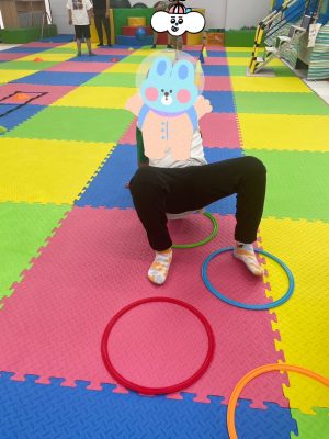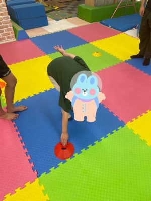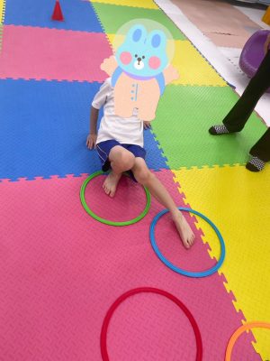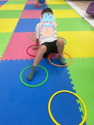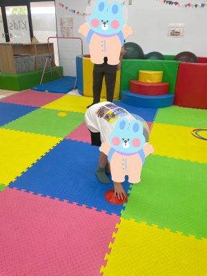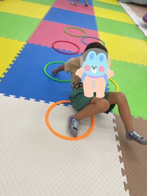 フラフープをクモ歩きをしていき、体幹やバランス感覚を高めていきます😊